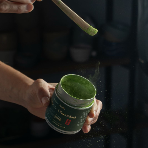 Nuestro matcha es de grado ceremonial, recolectado a mano, cocido al vapor y molido en piedra para conservar todos sus nutrientes.