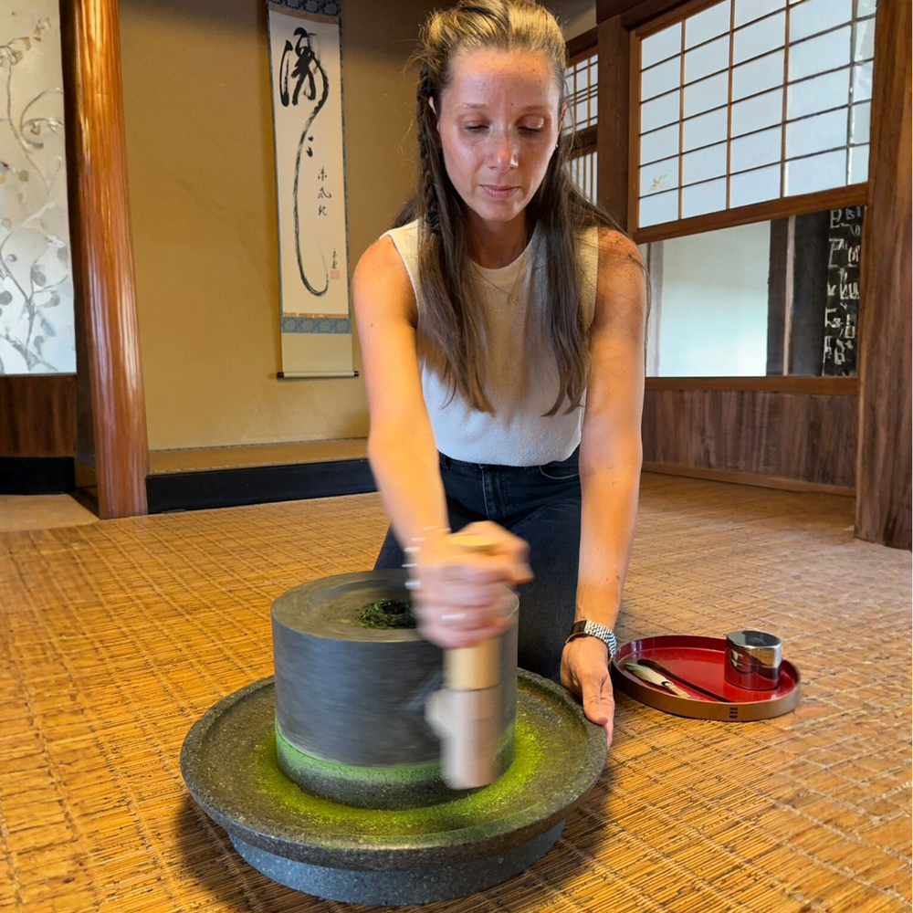 En uno de esos viajes a Nueva York descubrimos el matcha. Fue amor a primera vista: su color, su ritual, su energía limpia. Pero más allá del sabor, lo que más me sorprendió fue cómo transformó mi bienestar —me ayudó con la digestión, la concentración y la calma interior. Aritz fue quien me dijo: “Si esto te hace tan bien, tenemos que compartirlo.”